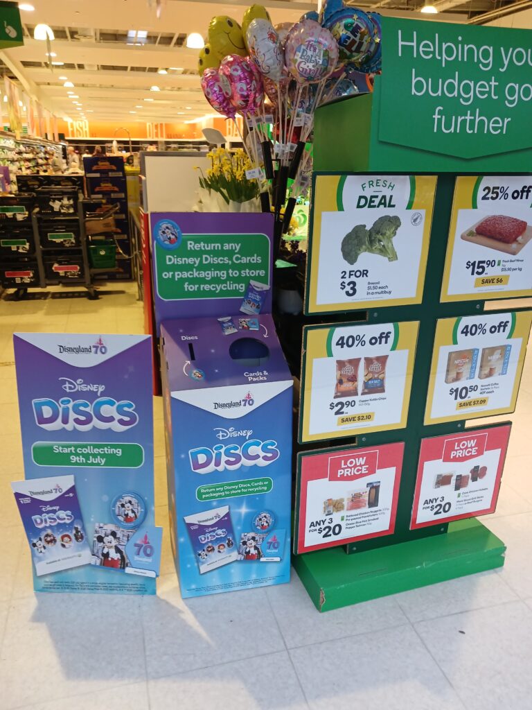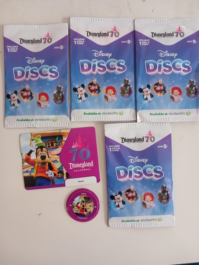 Woolworthsで買い物をすると$30毎にディズニーのいろんなキャラのカードとディスクが入った小袋がもらえます。つまり$150使えば5枚もらえる。